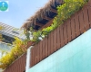 Trang trí ban công: Ốp tường ban công theo phong cách hiện đại, kết hợp với chậu hoa trang trí.