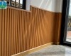 Decor vách TV bằng lam sóng kết hợp PVC vân đá