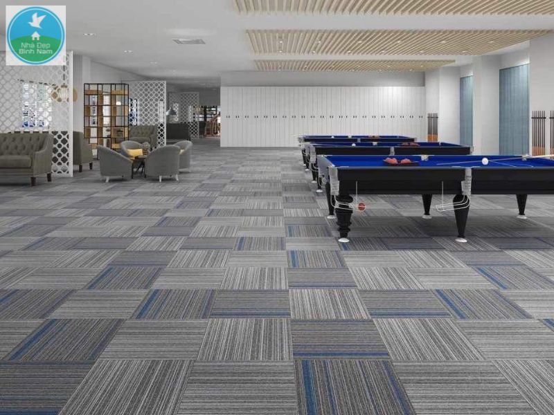 Thảm gạch văn phòng là dạng thảm trải sàn được cắt theo từng tấm vuông hoặc chữ nhật (phổ biến 50x50cm), dễ dàng lắp đặt, tháo dỡ và thay thế từng khu vực mà không cần tháo toàn bộ sàn.