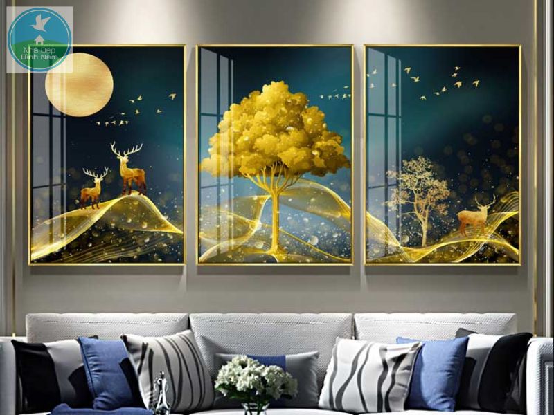 Tranh Phong Thủy: Các mẫu tranh mang ý nghĩa phong thủy, như tranh rồng, cá chép hay tùng hạc, giúp gia chủ thu hút tài lộc, may mắn.